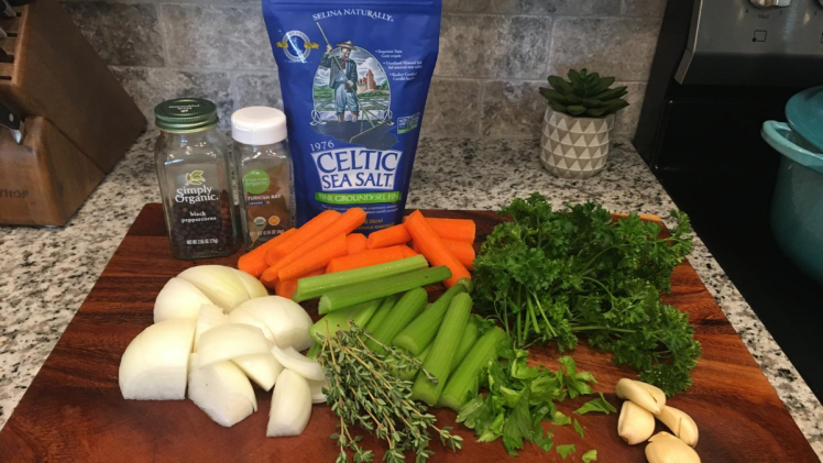 Good stock starts with good ingredients. You can sub dried herbs, but the inclusion of fresh, organic herbs lends a more vibrant aroma to your stock.