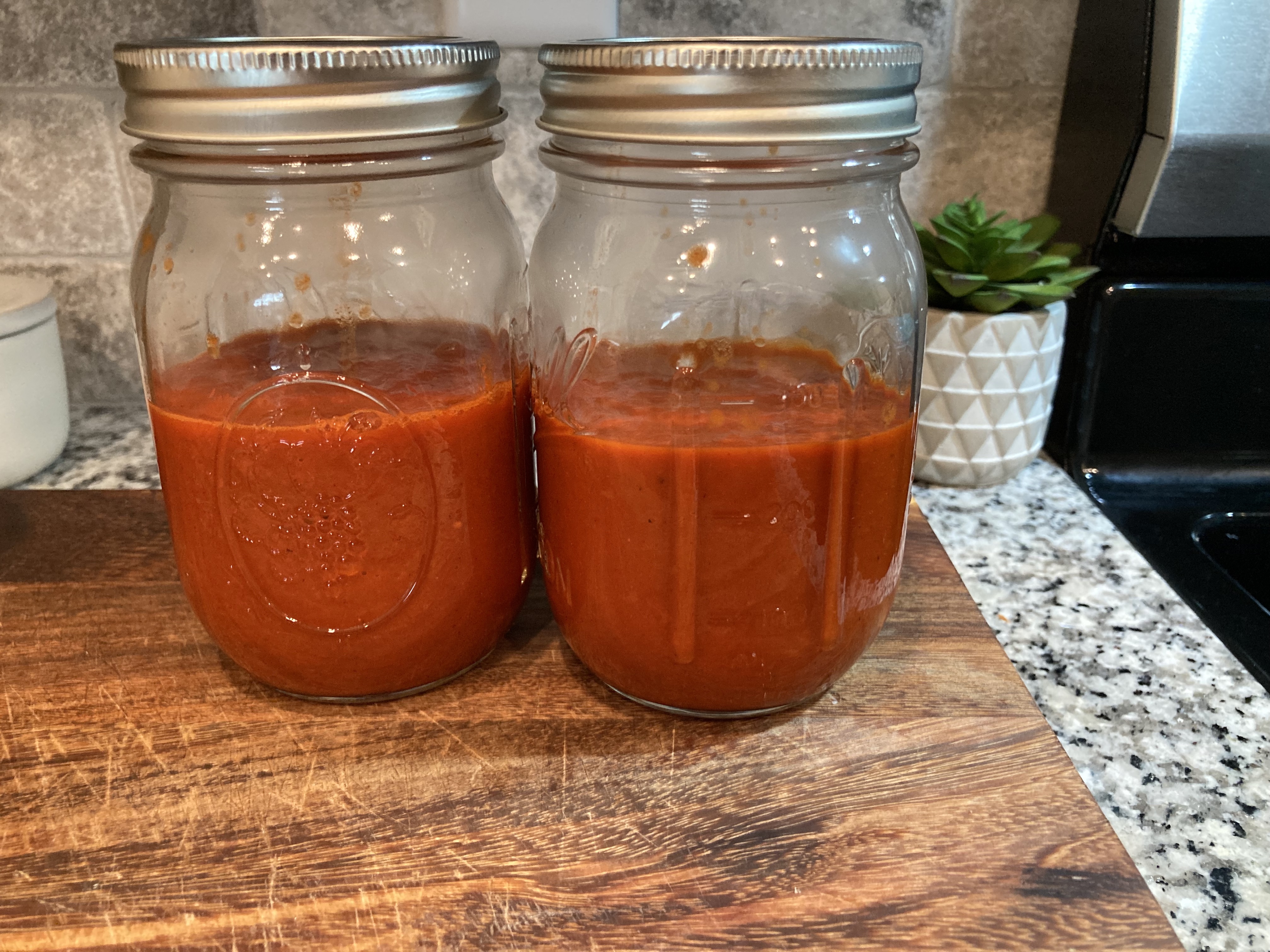 Split the excess finished product into two jars and freeze what is not needed right away. (For freezing, be sure to leave at least an inch of space at the top of your jars.)
