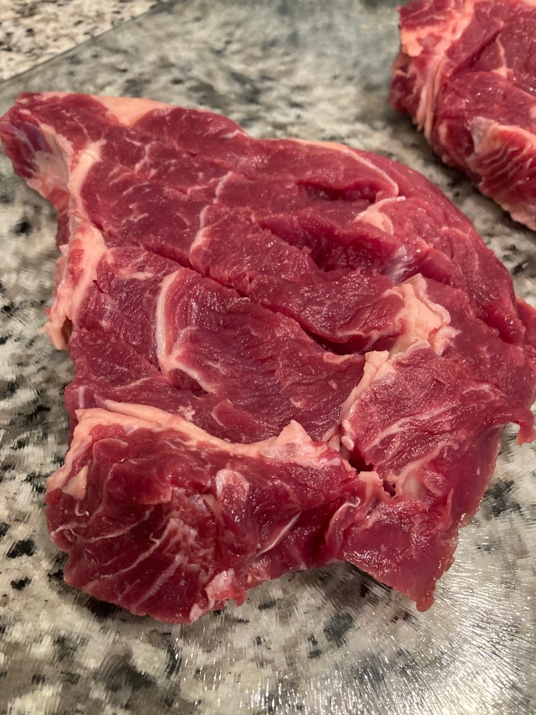 – 2 ribeye steaks about 1 inch thick (see notes above regarding this cut of meat)