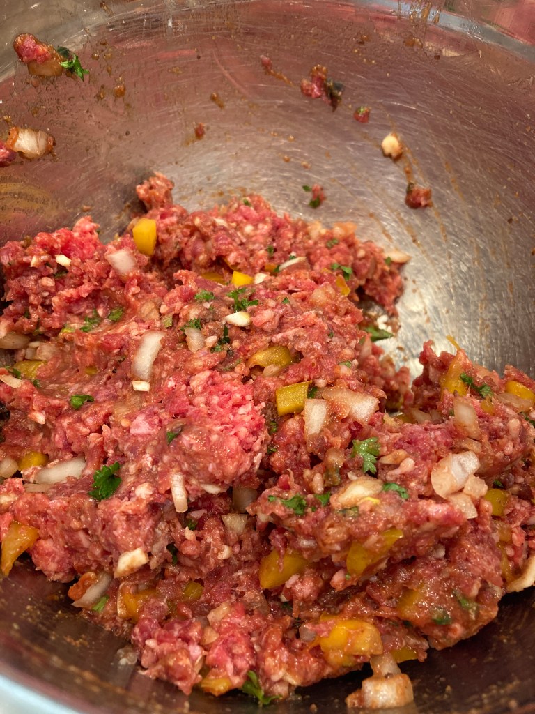 Most of these ingredients seem pretty standard for meatloaf. Rather than use store-bought ketchup or barbecue sauce which may come with unwanted sugar or other ingredients, I create the flavor of barbecue sauce using the base ingredients of tomato paste, maple syrup, apple cider vinegar, and spices. An egg is pretty standard in most meatloaf recipes. It binds everything together. I like to add diced onions, peppers, and garlic for more flavor. To make this gluten free, I use ground flax seed and arrowroot rather than the usual bread crumbs.
