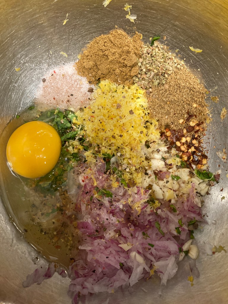 This recipe calls for a fresh lemon (zest and juice), fresh parsley, fresh mint, and fresh onion and garlic. All of these ingredients really bring life to the taste of these meatballs. Parsley and mint are so easy to grow at home. Whether you have a backyard garden, or a few pots in your kitchen window, these two herbs are so handy to have available. I grow both in pots outside my front door. They are each used weekly…and sometimes with even more frequency.