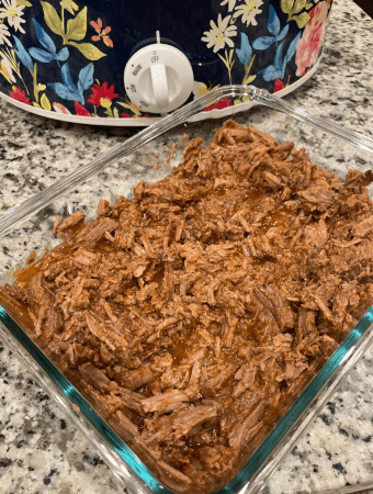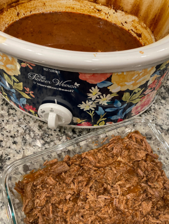 Cooking in a crockpot takes longer than using a Dutch oven. If you’re going to be home, you can use a Dutch oven at 300 degrees for 3-4 hours or until the roast is easy to shred. In a crockpot, I’ve found that this recipe will take closer to 5-6 hours on high to produce the same results. But again, a crockpot provides the ability to leave the house while the meal is cooking. If that’s what you need, do it!