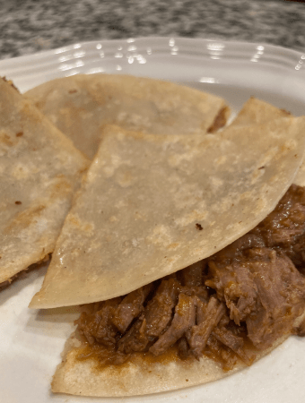 I like to use this shredded beef to make tacos or quesadillas, but it also makes a great salad topper. Whip up a little pico or guacamole to complement this dish. Serve with fresh cut cilantro and /or jalapeños. Enjoy!