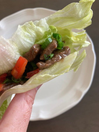 If you’d like to serve this beef as a lettuce wrap, consider using shredded carrots and/or green onions as a topping. You can also use a bit of chilled sticky rice in the wrap. This beef would also be a great topping for rice, rice noodles, or even an asian style chopped salad.