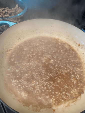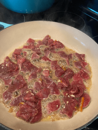 - After about two minutes, add the steak back to the pan. Stir to coat the steak in the sticky sweet sauce. When well coated, remove from heat.