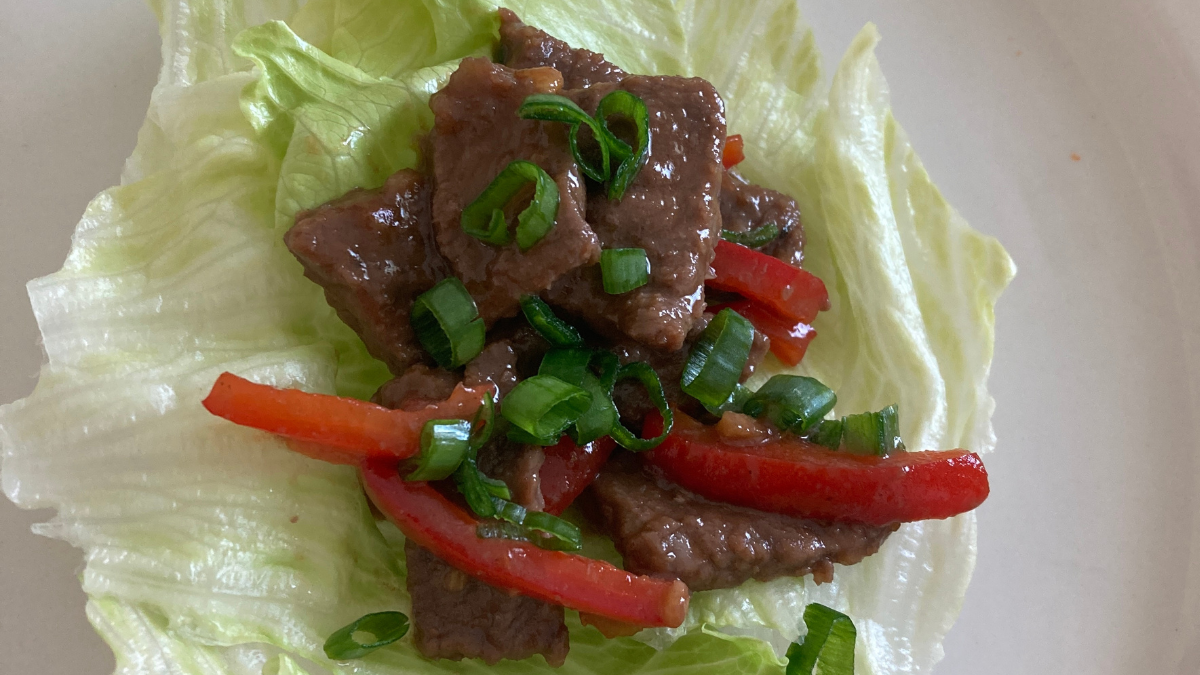 - In a piece of lettuce, place a bit of the beef mixture, shredded carrots and/or green onions. If preferred, you may place a small amount of cooled sticky rice into the lettuce before layering the beef and additional toppings. You can also use this beef atop rice, rice noodles, or atop an asian chopped salad. Enjoy!