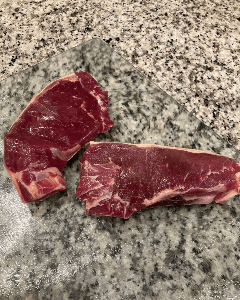 - 2 beef steaks (New York Strip, Sirloin, Ribeye Steaks)