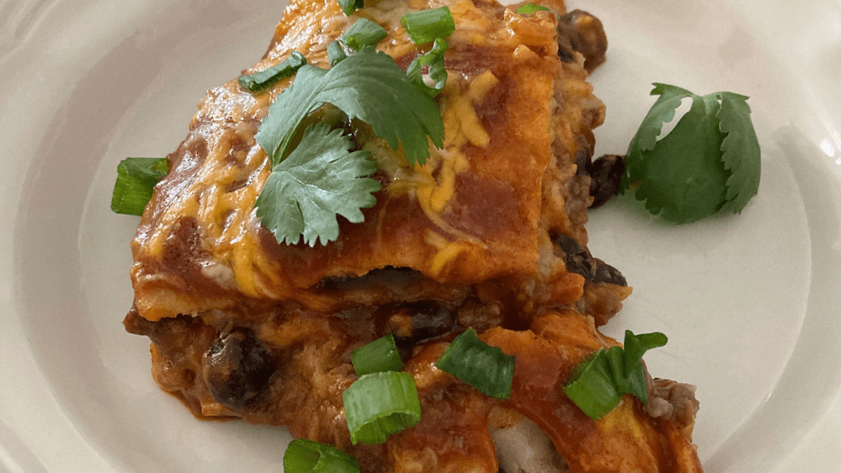 I decided to stack all the ingredients like a lasagna. I’ve never gone back to rolled enchiladas. Stacking saves so much time in the process, and everyone enjoys them just as much.